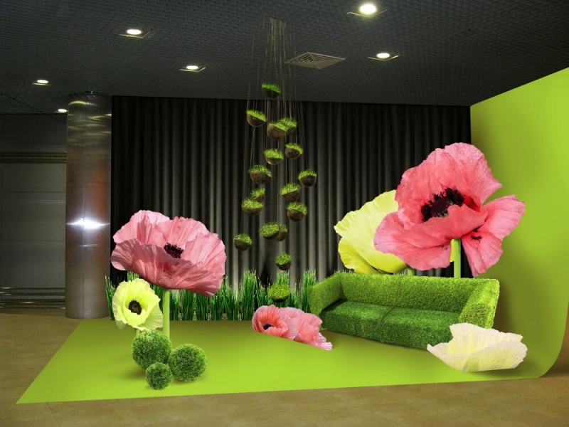 - Решение: зонирование пространства, иллюстрирующее четыре времени года.